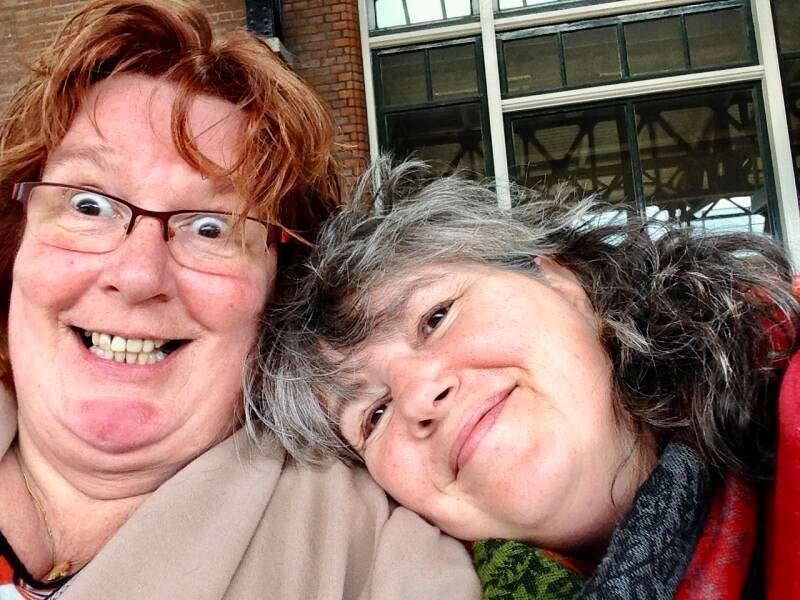 Voor het fotomoment gingen we het balkon op. Anita sloeg een arm om m’n schouders en zei: