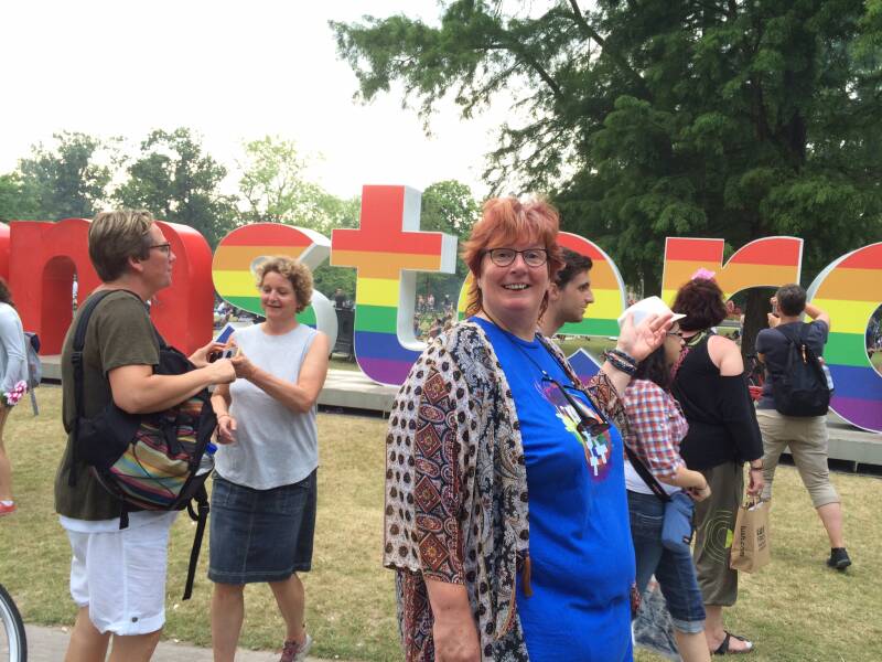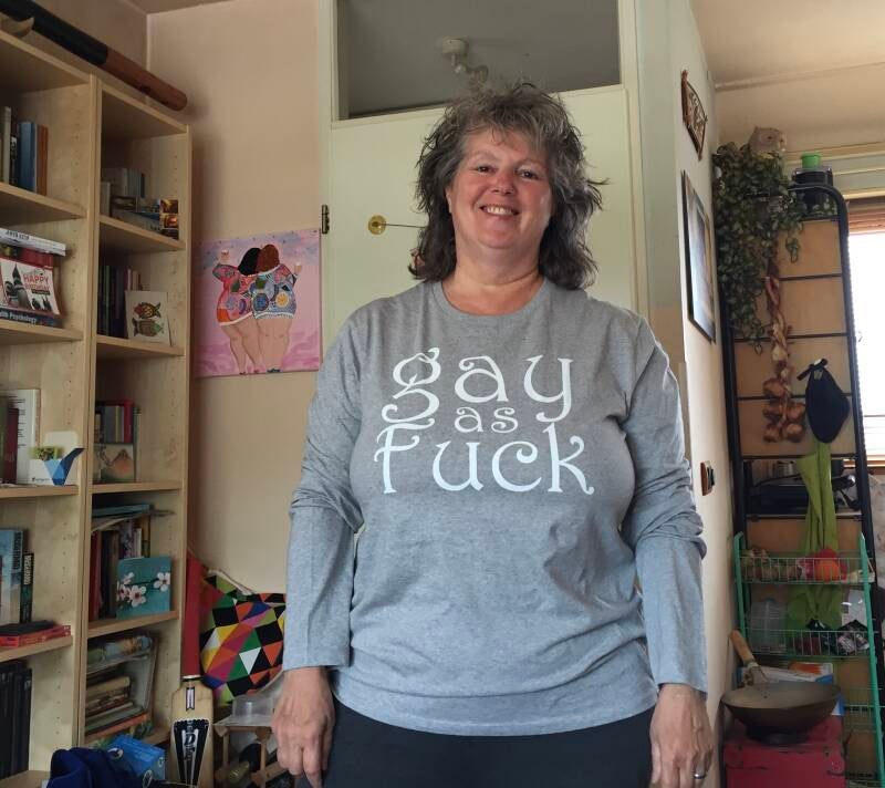 Het was een hele heisa geweest om deze ringen te bemachtigen. We hadden ze ergens voorbij zien komen, van die regenboogringen die ons meteen aanspraken. Ik ging het net op en kwam bij een queer-vriendelijke site terecht die vanalles had wat met regenboog en ring te maken had. Okidook. We vonden een model gemaakt van materiaal dat rechtstreeks vanuit de oerknal in de winkel was terecht gekomen en beresterk, dat het graveren van naam en datum waarschijnlijk geen ene juwelier zou blij maken.
