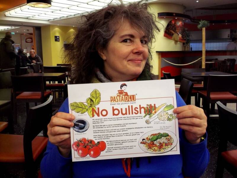 Op de menukaart stond verdomd weinig vegetarisch vermeld. Ik vroeg de kelner naar wat te grazen voor mij en wat bleek: de kok kon voor ons een op maat gemaakt happie fabriceren. Prima. Hij weg om na tien minuten terug te komen met twee babyschaaltjes waarop drie verschillende gekleurde hondenbrokjes lagen.