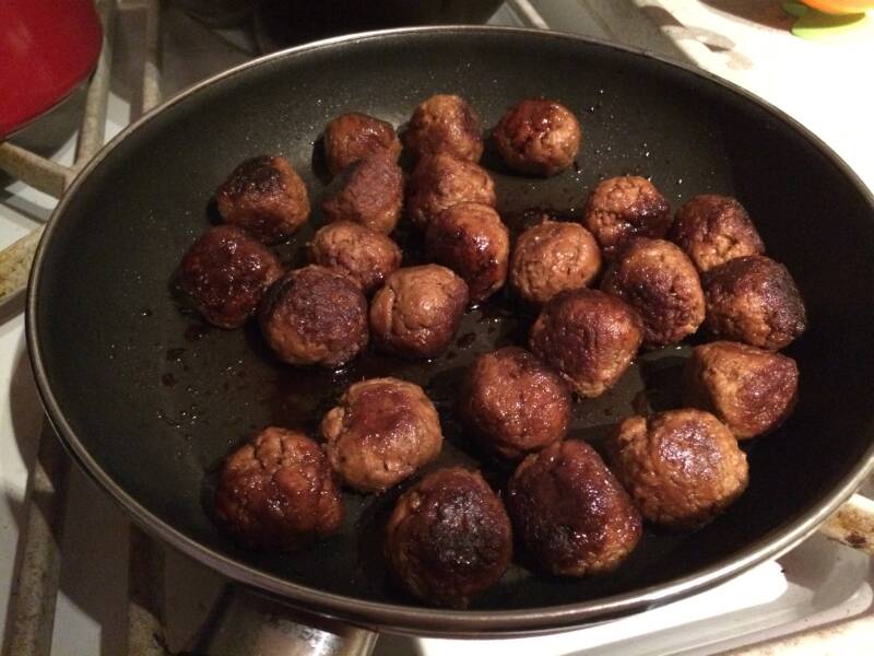 Links de zelfgemaakte vega balletjes, klaar om gegeten te worden.